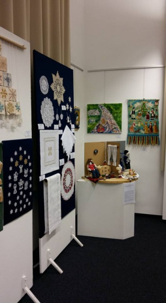 A kiállítás anyagából Semmelweis Tibor kiemelte Budai Katalin bútorfestő modern felfogású karácsonyfáját, a Szekszárdi Kolping Iskola mohácsi tagozatának betlehemi jászolát, és különösen érdekesnek nevezte Serföző Helén Jézus születése című képét.