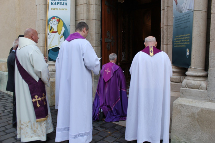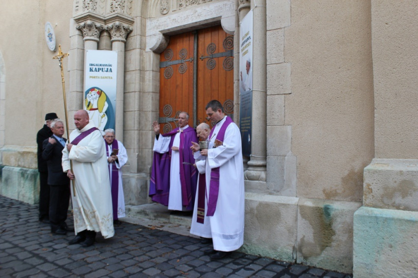 A veszprémi Szent Mihály-bazilikában a vasárnap délelőtti szentmise végén a hívek elimádkozták a szentév imáját, majd a templomból kivonulva Nagy Károly apát, kanonok, plébános bezárta a szent kaput.