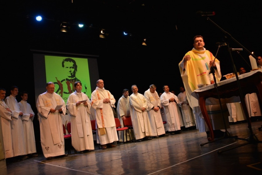 A jubileumi év kezdetét jelentő ünneplés 11 órakor szentmisével kezdődött, amelyet Ábrahám Béla tartományfőnök paptestvéreivel együtt mutatott be. A szentbeszédet a Rómából érkezett Ivo Coelho mondta.
