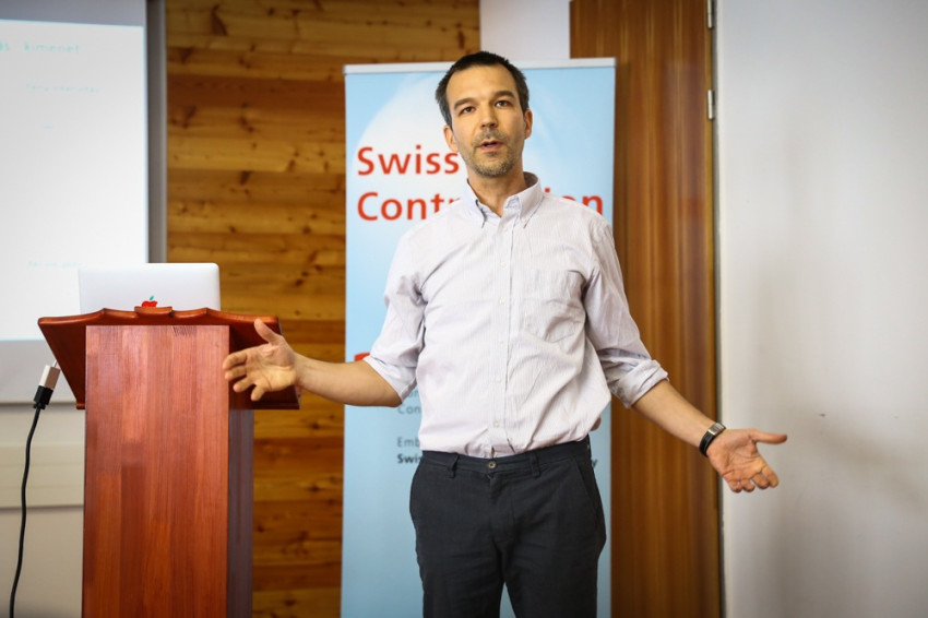 Rózsa Balázs, a Magyar Tudományos Akadémia Kísérleti Orvostudományi Intézetének csoportvezetője, a PPKE laborvezetője, illetve a Femtonics Kft. ügyvezetője és fejlesztési igazgatója a 3D 2-foton-pásztázó lézermikroszkópot mutatta be előadásában (Idegsejtek Ca2+-szignalizációs folyamatainak mérése saját fejlesztésű nagy sebességű, véletlen hozzáférésű 3D 2-foton-pásztázó mikroszkóppal).
