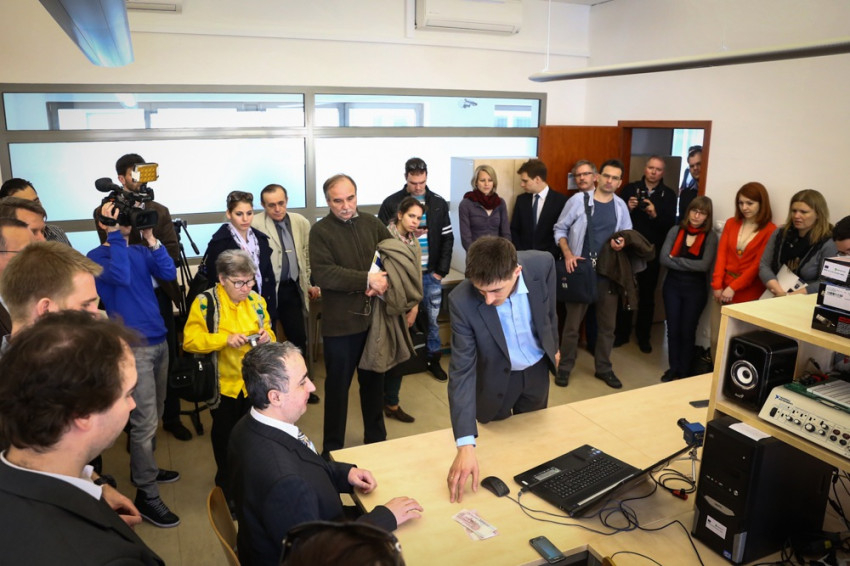 A sajtótájékoztató után lehetőség nyílt a PPKE Információs Technológiai és Bionikai Karának labormunkáiba való bepillantásra, melynek során Szuhaj Mihály, az „Informatika a Látássérültekért” Alapítvány elnöke mutatta be a mobiltelefonra kifejlesztett bankjegyfelismerő alkalmazás működését. A laborlátogatás során Karacs Kristóf válaszolt a felmerülő kérdésekre, amelyek többek között érintették a kifejlesztett program további területeken, így a gyalogos-átkelőhelyek felismerésében való alkalmazását is. Ezzel kapcsolatban a PPKE tanára elmondta, hogy kísérleteik folyamatban vannak, de egyelőre nem tervezik a mindennapos használatra szánt alapprogramhoz csatolni az utcán való átkelést segítő applikációt. Hozzátette, a bankjegyek felismerhetőségét segítő alkalmazás hamarosan letölthető lesz az egyetem honlapjáról.