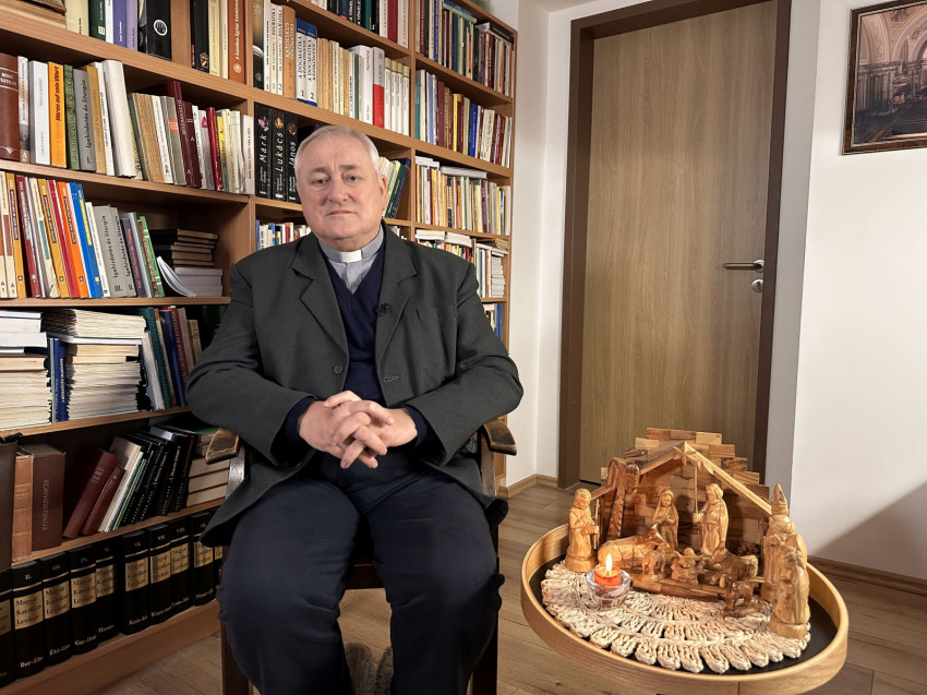 Püspök atya napjaink háborús helyzetére tekintve, a békére való törekvés feladatát a megtestesülés titkának fényében mutatja meg.