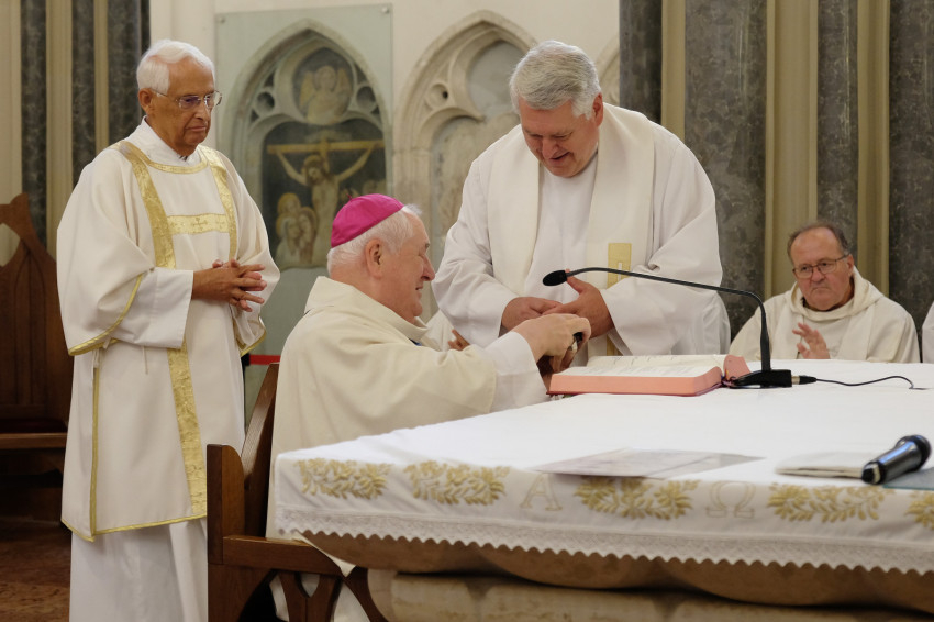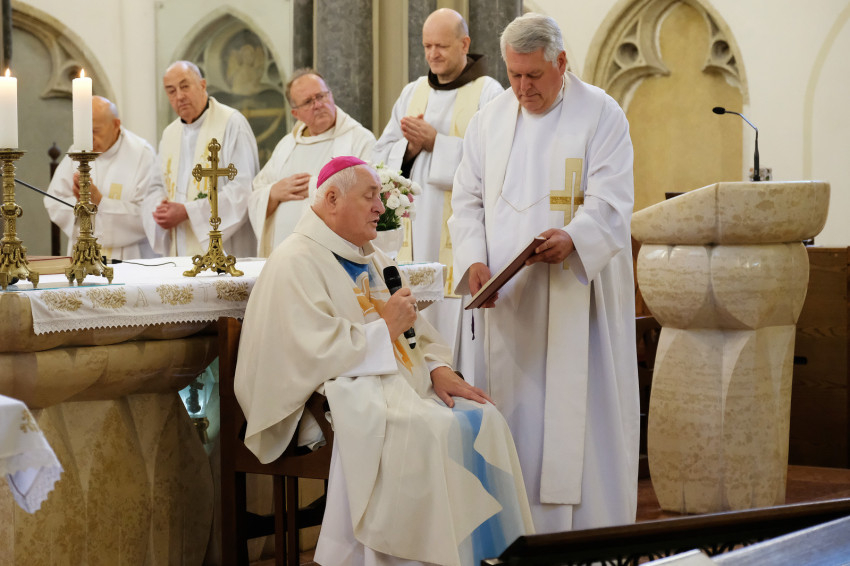 Bíró László megköszönte a kedves fogadtatást. Így fogalmazott: hazajött ebbe a templomba. Rengeteg gyönyörű élmény köti őt ide; örül a híveknek, a paptársaknak, akik egyre fiatalabbak lesznek.