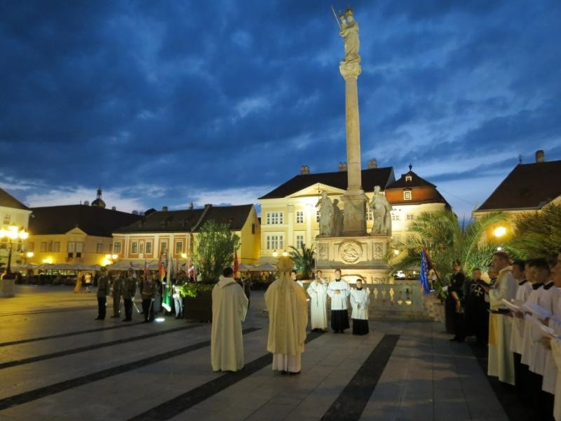 A szentmisén a Czuczor-gimnázium kórusa énekelt Kelemen Áron bencés atya vezényletével. A záróáldás után a loretói litániát énekelve vonultak a hívek a templom előtti téren álló Mária-oszlophoz, ahol együtt imádkoztak a Szűzanyához.