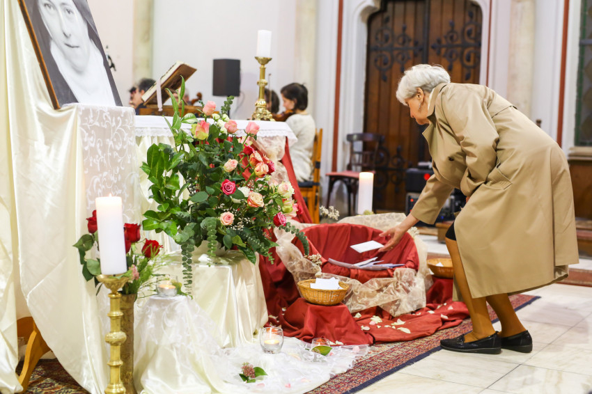 Az imaesten az előadás mellett, ahogyan korábban, úgy most is több tanúságtétel is elhangzott, melyek mind-mind olyan csodákról szóltak, melyek a Kis Szent Teréznek címzett kéréseket tartalmazó levelek megírása után történtek. Csodás gyógyulásokról és az igazi lelki társ megtalálásáról is hallhattunk történeteket. Ezért nem volt meglepő, hogy az imaest alatt ez alkalommal is megtelt az Örökimádás-templom és az oltár előtt kihelyezett, a kéréseket gyűjtő kosár. De talán nemcsak az a fontos, hogy miben kértük Kis Szent Teréz közbenjárását, hanem az is, hogy mit vittünk magunkkal haza mi az estéből. Elég bátrak leszünk-e ahhoz, hogy megvizsgáljuk a saját istenképünket, s ha kell, a változás mezsgyéjére lépjünk, bízva Istenben, az ő akartában…?