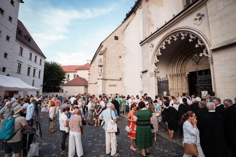 „Köszöntöm továbbá Magyarország pozsonyi nagykövetségének képviselőjét, a közéleti személyiségeket – mind az országos, mind a regionális, mind pedig az önkormányzati szinten tevékenykedő tisztségviselőket –, a Mária Légió és a lovagrendek tagjait, a ministránsokat és a cserkészeket, a népviseletbe öltözött híveket, vendégeket és helyieket, otthoniakat és zarándokokat, minden jó szándékú testvért!”