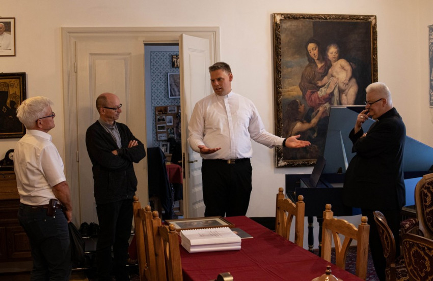 „Van boldog papi élet” – mondta a plébános, és bemutatta azt az imádságban és egymásra figyelésben jól működő papi közösséget, amely a kegyhely és a hozzá tartozó tizenhat falu lelkipásztori ellátását biztosítja. Hálával beszélt arról a szinte egy családként működő, nyolcfős személyzetről is, akikre mindenben számíthat.
