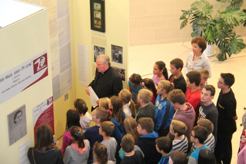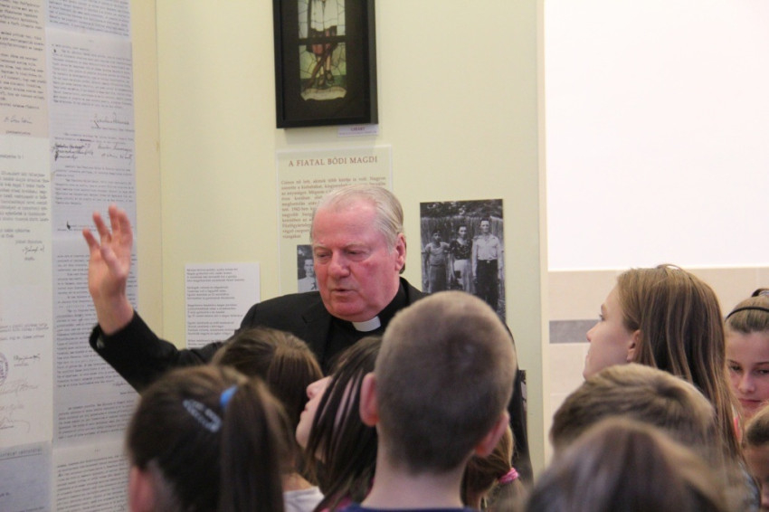 Az ünnepség végén Mail József apát mutatta be a gyerekeknek a kiállítást, külön figyelmet szentelve Bódi Magdi életének kiemelkedő eseményeire.