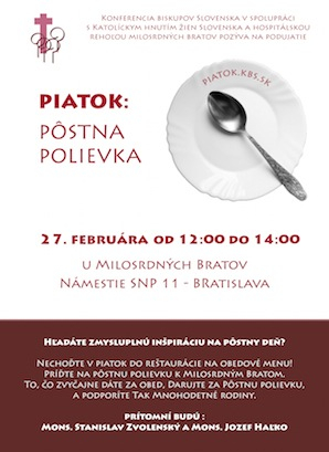 Akik csatlakoznak a kezdeményezéshez, a pozsonyi Irgalmas Testvérek házában (Szlovák nemzeti felkelés tere 11.), 12 órától 14 óráig fogyaszthatják el a böjti levest, amiért legalább egy, szokásos ebédjük árát ajándékozhatják a kezdeményezés jótékony céljára: segítségre szoruló, többgyermekes családok megsegítésére. A levesosztásba a Pozsonyi Főegyházmegye érseke, Stanislav Zvolenský, valamint segédpüspöke Haľko József is bekapcsolódik.