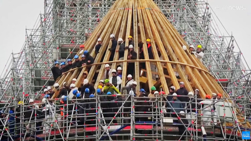 A templom tetőzeti favázát a középkori terv szerint építették vissza és kézzel formázták – magyarázta Philippe Jost, a párizsi Notre-Dame újjáépítésének vezetője. Kézi szerszámokat, fejszét és fűrészeket használtak, hogy valóban kézműves műremek legyen a középkori tető rekonstruálása. A végeredmény gyönyörű és tartós lett a főépítész szerint.