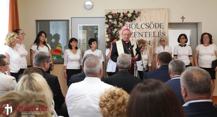 A főpásztor utalt június 6-ra, a Debrecen-Nyíregyházi Egyházmegye székesegyházának felszentelési ünnepére, amelyhez hasonlóan a bölcsődében, óvodában is van tanítószék: oda ül le a gyermek, és tanítja a felnőttet – fogalmazott Palánki Ferenc püspök.