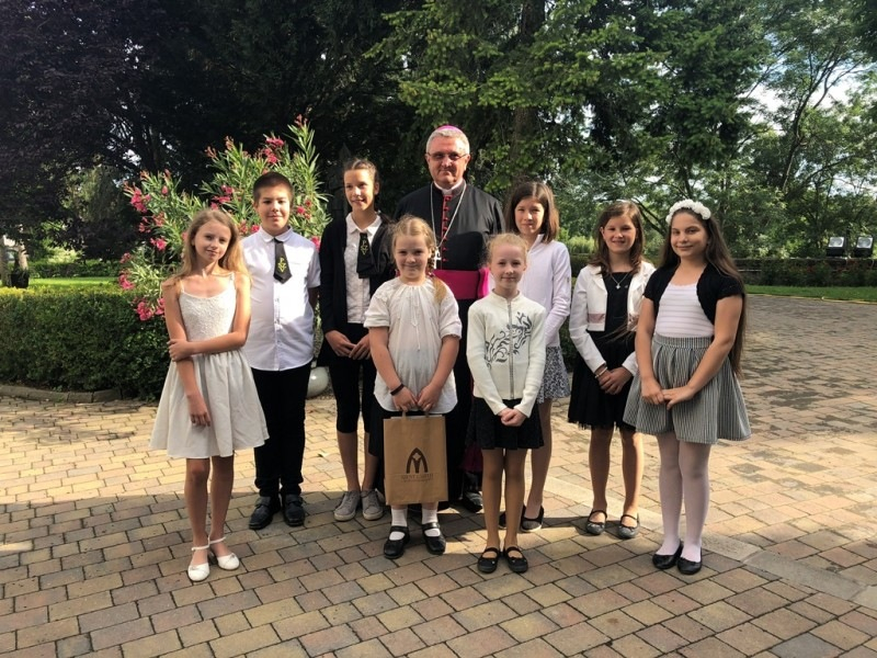 A gyermekeket, szüleiket és felkészítő tanáraikat Cseh Sándor, a Győri Egyházmegye Püspöki Vagyonkezelőjének igazgatója és Veres András győri megyéspüspök köszöntötte június 22-én. Az ünnepségen közreműködött Bognár Krisztina énekművész: előadásában felcsendült Maróti Gábor Himnusz Boldog Apor Vilmos püspökhöz című műve, valamint a Győzhetetlen én kőszálom kezdetű Jézus-ének.