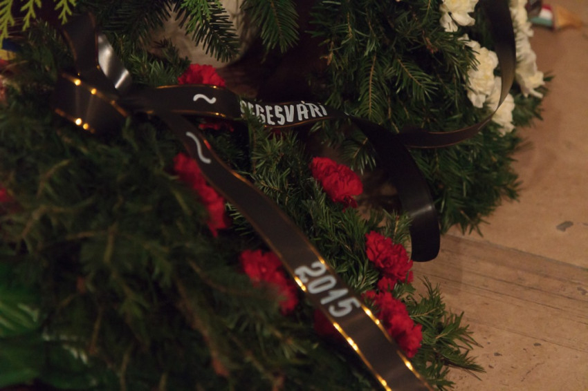 A kármelita templomban történt gyertyagyújtás után az emlékezők körmenetben, énekelve és imádkozva vonultak a Püspökvár kertjébe, a vértanúság helyére. Itt Győr Megyei Jogú Város nevében Somogyi Tivadar és Fekete Dávid alpolgármesterek, majd az Apor-emlékbizottság képviselői helyeztek el koszorút. Torda Béla emlékezésében rámutatott: Apor Vilmos 1997-es boldoggá avatásával egy hosszú sor kezdődött a közép-európai totalitárius diktatúrák áldozatainak kanonizációjában.