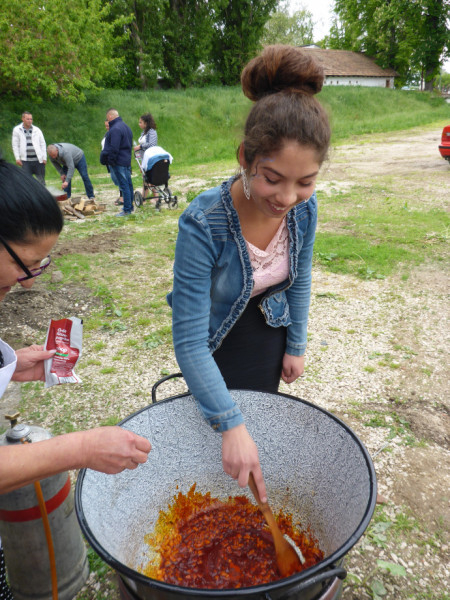 Nagy vendégszeretettel fogadtak minket, s hamarosan megismerhettük az igazi cigány pörkölt titkát: fatűzön és téglán kell főzni. Míg az asszonyok sürögtek-forogtak az étel körül, a férfiak sakkversenyen mérték össze tudásukat, a gyermekeket pedig bohóc szórakoztatta.