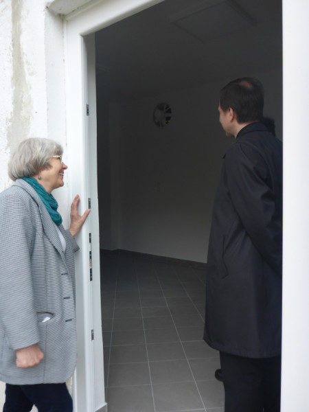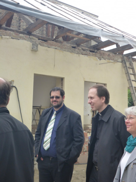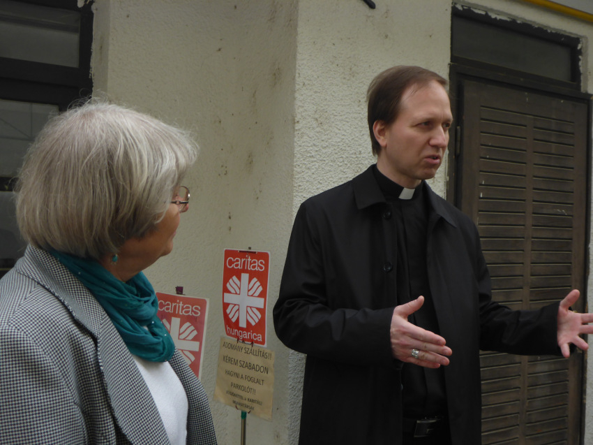 Michels Antal plébános, a közösség lelkivezetője hamarosan megérkezett, és miután köszöntötte a híveket, elindultunk a roma misszió felújítás alatt álló központjához, a Simor János utcába, ahol Mohos Gábor segédpüspök is csatlakozott hozzánk.