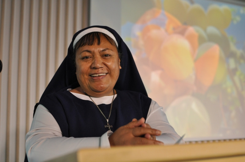 A szakmai nap végéhez közelítve Takács Klarissza ferences szegénygondozó nővér tartott előadást a cigány gyermekek elfogadásáról, az ő hitoktatásuk sajátosságairól. Hangsúlyozta, hogy Isten nem személyválogató, és a szeretet adása nem függhet a bőrszíntől. Kiemelte továbbá, hogy kerülni kell az általánosítást, a sztereotípiákat, hiszen rengeteg érték és tehetség van a roma gyerekekben is. Szent Ferencet hozta fel példaként abban, hogy a romákkal foglalkozva is az ő egyszerűségét és imádságos lelkületét kell követnünk. Az oldott, felszabadult légkörben telt programdús szakmai nap szentségimádással zárult.
