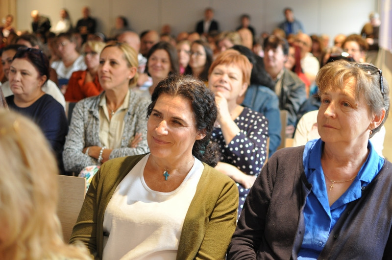 Gloviczki Zoltán, az Apor Vilmos Katolikus Főiskola (AVKF) rektora Napjaink pedagógiai kihívásai címmel tartott előadást, mely láthatóan felkeltette a jelenlévők érdeklődését. Elsősorban arról beszélt, mit is jelent tanárnak lenni, mire van egy pedagógusnak hivatása. „Miért van szükség pedagógusokra? Hogy segítsünk a szülőknek életképes és boldog felnőtteket nevelni a gyerekeikből. Nem arra, hogy tudjon valamit a gyerek. Nem arra, hogy elérjen valamit. Szembesülnünk kell azzal, hogy hiába van tananyag és tankönyv,