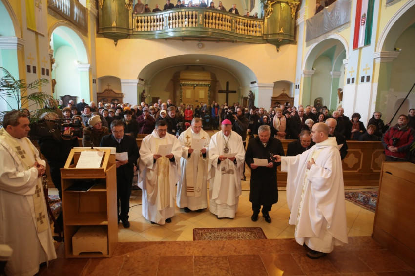 Végül lelkiismeretet vizsgáztató kérdéseket tett fel a hívő közösségnek: Hogyan viszonyulunk mi, Boldog Özséb magyarjai a kereszthez, a könyvhöz és a kétkezi munkához? Van hitünk, vagy lázadunk, értetlenkedünk, belezuhanunk a kétségbeesésbe? Olvassuk-e a Szentírást, a keresztény sajtót, vagy megelégszünk a szappanoperákkal? Ég-e kezünk alatt a munka, vagy sopánkodunk, nyafogunk? Mikor kezdjük el az építő munkát?