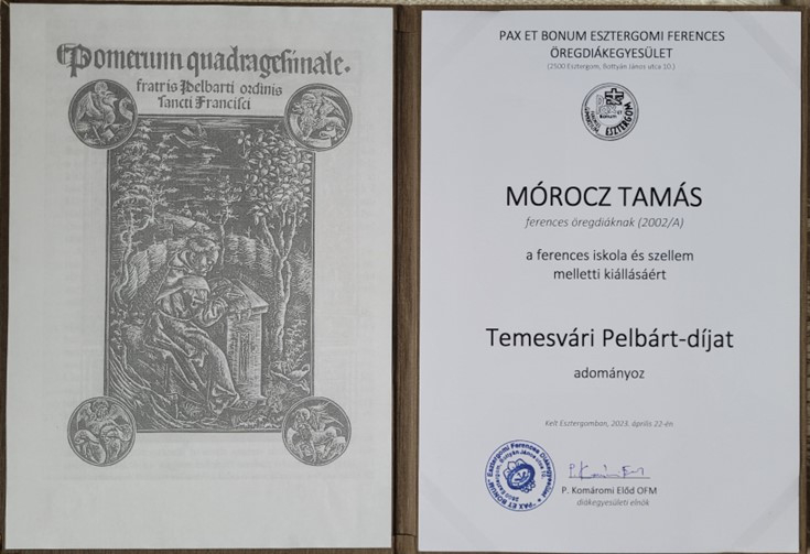 A Boldog Temesvári Pelbárt-díjat április 22-én adták át Mórocz Tamás kanonoknak.