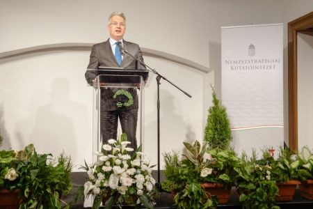 Szász Jenő, a Nemzetstratégiai Kutatóintézet elnöke köszöntőjében kiemelte: Mária életmentő, engesztelő, kegyelemközvetítő erejére korunknak különösen nagy szüksége van. 1917-ben ugyanis a világtörténelemben olyan eszme jelent meg, amely hivatalos ideológiává tette az ateizmust, szervezetten és erőszakosan terjesztette az istentagadást, pusztította az istenhitet és annak valamennyi intézményét. Ez az ateizmusra és materializmusra épített világbirodalom azonban összeomlott, a „mi dolgunk pedig az, hogy az élet szentségét, a szépség, a jóság, az igazság és a hűség, a felelősség és a hazaszeretet hitét mutassuk fel”.