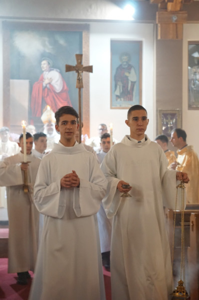 A koncelebrált ünnepi szentmisén liturgikus szolgálatot teljesítettek az iskola diákjai, akik az asszisztenciában és az éneklésben egyaránt szerepet vállaltak.