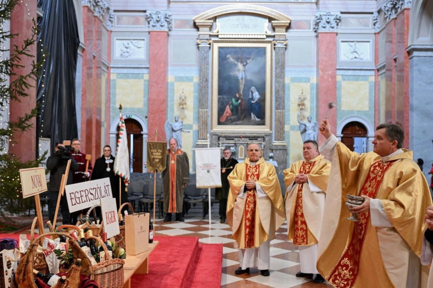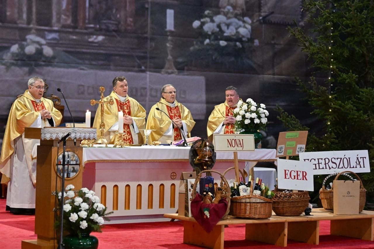 Karácsony harmadik napja, december 27-e Szent János apostol és evangélista ünnepe. Ez az egri bazilikában különösen nagy ünnep, hiszen a káptalan tagjai összejönnek és együtt imádkoznak, ünneplik a szentmisét, melyben az Egri Főegyházmegye védőszentjét köszöntjük – mondta Ficzek László általános helynök a szertartás kezdetén. – Régi hagyomány szerint ilyenkor történik a borszentelés. Az emberi tevékenységre kérjük Isten áldását. „Imádkozzál és dolgozzál és így lesz teljes az életed” – szól Szent Benedek bölcsessége, ezért kérjük Jézus Krisztust, hogy áldása tegye teljessé tevékenységünket.