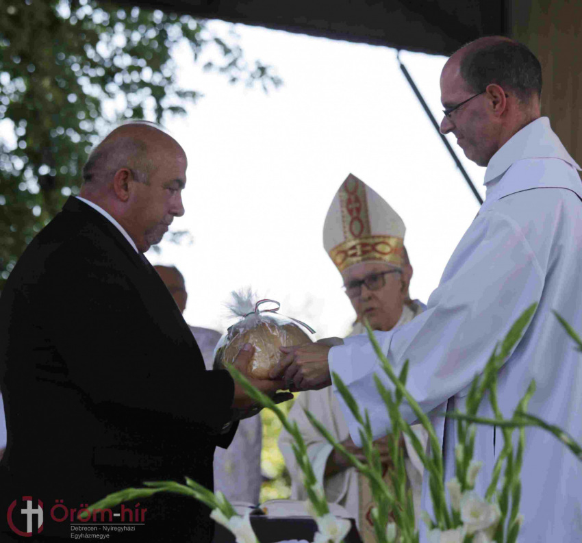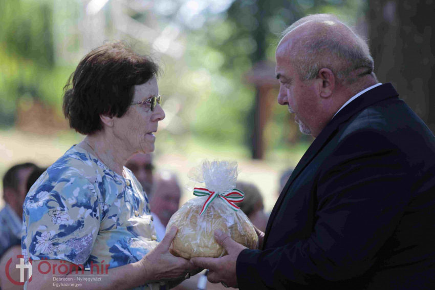A szentmise végén Kerekes László, Geszteréd plébánosa mondott köszönetet mindenkinek a jelenlétéért, valamint gratulált Bosák Nándor püspöknek az augusztus 20-a alkalmából kapott Magyar Érdemrend középkeresztje kitüntetésért. Ezt követően a püspök megáldotta az új kenyereket, amelyeket Szabó József polgármester elsőként a falu legidősebb férfi és női lakójának, majd a vendégeknek adott át.
