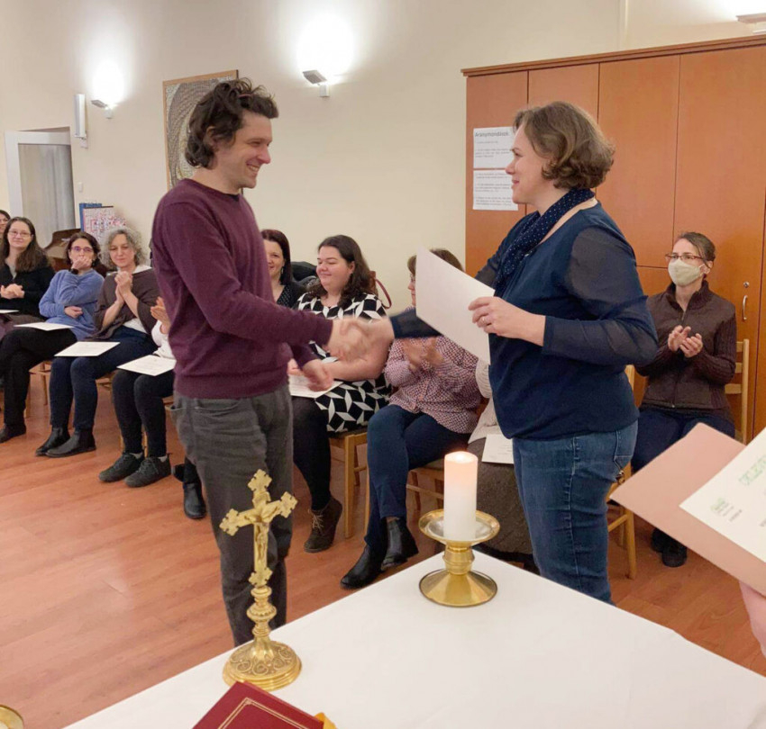 Az egyéves oktatóképző tanfolyam a Katolikus Szeretetszolgálat és a Fília Alapítvány támogatásával indult 2021 februárjában a szentendrei Ferences Gimnáziumban. Annak ellenére, hogy a járványhelyzet miatt nehezített körülmények között, kis létszámú csoportokban dolgozva, többszöri halasztással zajlott a program, sikerült teljesíteni az elméleti, gyakorlati és teológiai modulokat is. A képzést záró hétvégére január 28–29-én került sor Budapesten, az újpest-kertvárosi plébánián, ahol sikeres írásbeli és szóbeli vizsgát követően huszonegy oklevelet osztott ki a központ oktatási bizottsága.