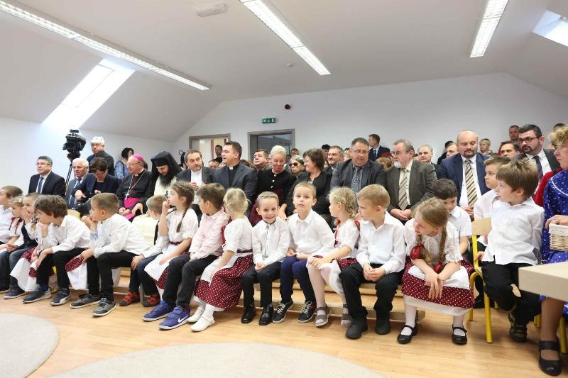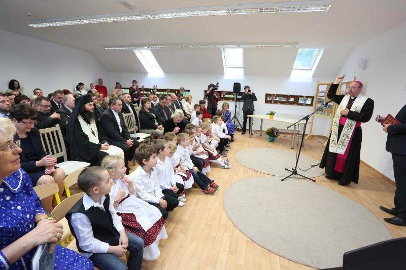 Palánki Ferenc megyéspüspök, miután megáldotta a Kozák György által felajánlott fali keresztet és az épületet, beszédében a gyermekekre irányította a figyelmet, akiket Jézus példaképként állít elénk: „ilyeneké az Isten országa” (Mk 10,16).