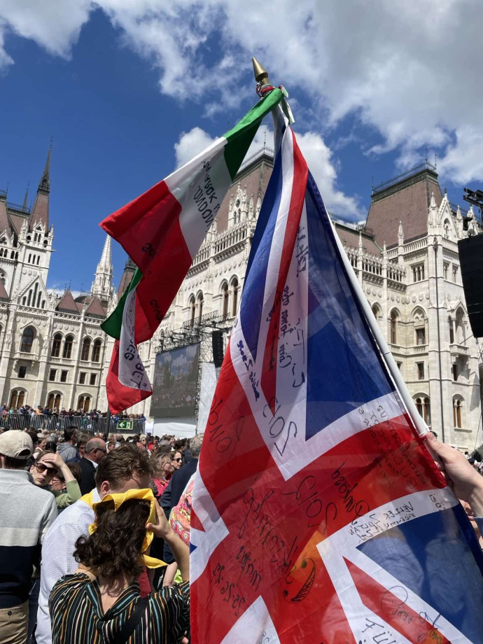 A Kossuth téri pápai szentmisén a hívő emberek tengerében, amely tele volt magyar lobogókkal, a települések és plébániák zászlóival, ott volt egy brit zászló is: a londoni magyar közösség is jelen volt a nagy eseményen. Együtt imádkoztunk Ferenc pápával a világ békéért.