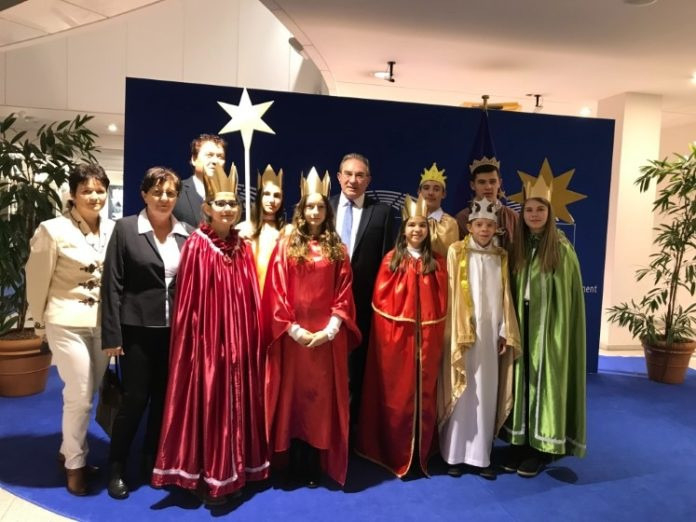 Az örömhírt hozó, jelmezbe öltözött gyerekeket Rainer Wieland, az Európai Unió alelnöke és több politikus fogadta. Az alelnök köszöntőbeszédében a betlehemezés szokásának fontosságára is kitért. A magyar betlehemezők találkoztak Hölvényi György, Winkler Gyula és Sógor Csaba képviselőkkel is, és az áldás kezdőbetűivel (20 + C + M + B + 19) jelölték meg irodáik ajtajait, köztük az Európai Parlament főbejáratát is.