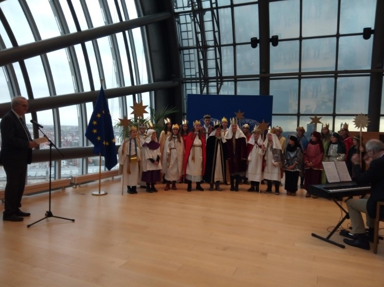 A háromnapos, városnézéssel, közös programokkal egybekötött látogatás központi eseménye kedden, január 8-án volt, amikor a betlehemezők és csillagénekesek közös műsorral köszöntötték a COMECE és az Európai Parlament munkatársait.