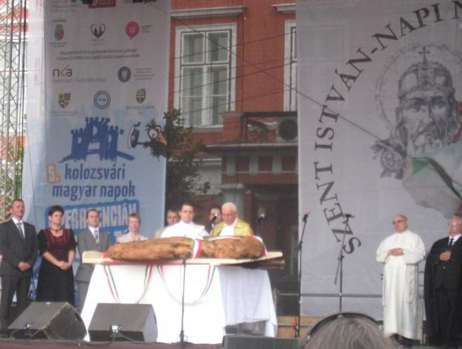 Augusztus 20-án több száz összesereglett ember jelenlétében áldották meg Kolozsvár főterén, a Mátyás király-szoborcsoport közelében felállított színpadon azt a kétszáz kilós, rekordméretű kenyeret, melyet Szolnokon sütöttek.