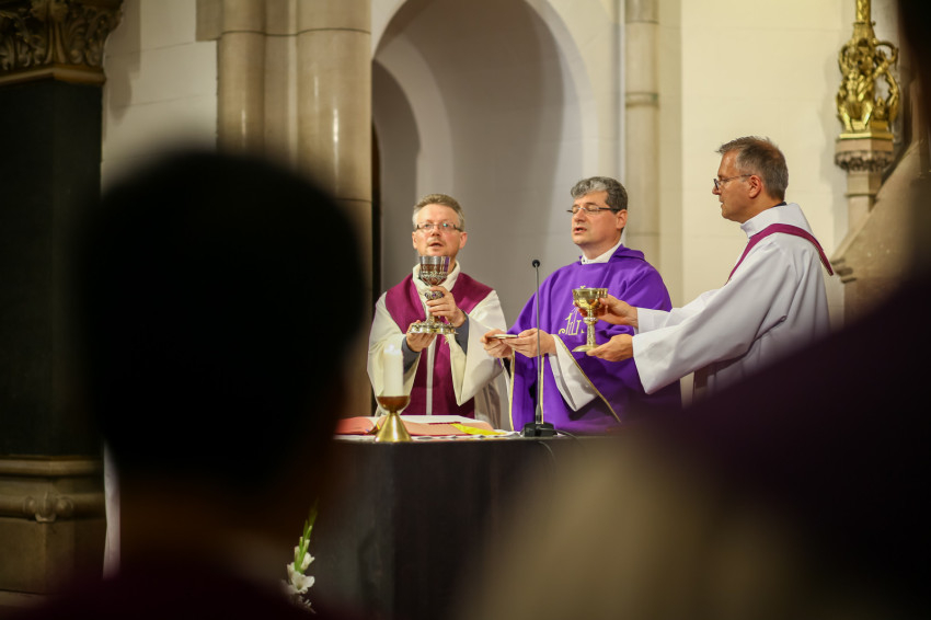 Bár az ország több városában mutatnak be gyászszertartást az augusztus 6-án elhunyt jezsuita szerzetesért, és Hildesheimbe is nagy számban utaztak temetésére tisztelői, a jezsuita templom is teljesen megtelt a Péter atyáért felajánlott szentmisén. Nagy számban érkeztek paptestvérek és hívek a Szeged-Csanádi Egyházmegyéből, több rend szerzetesei és szerzetesnővérei, különböző generációk, akik Péter atya életéhez egy-egy magyarországi településen kötődtek.
