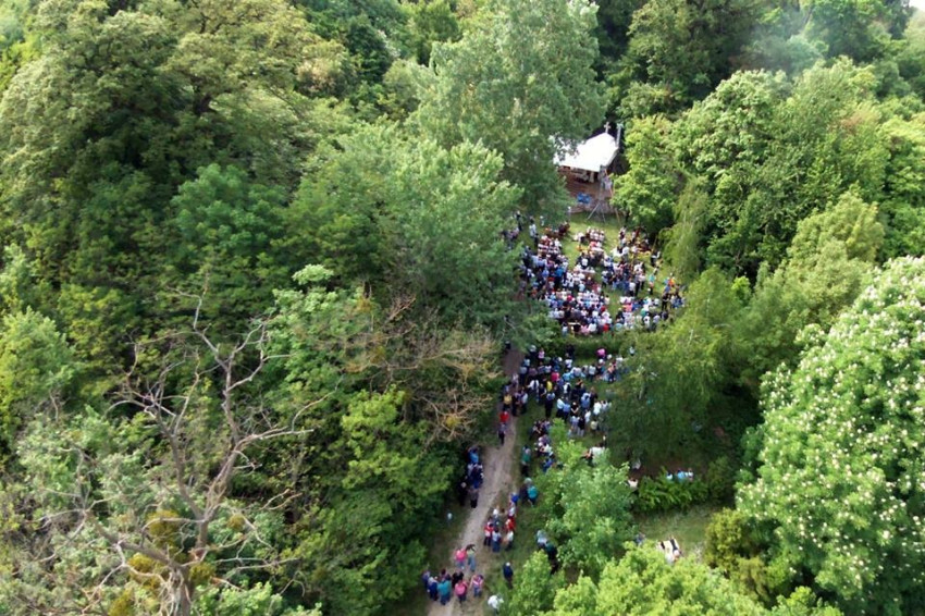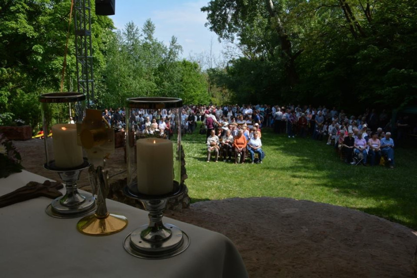 Az erdei tisztáson kialakított lourdes-i barlangnál a Dauner János szalézi atya által negyven évvel ezelőtt alapított Don Bosco Ének- és Zenekar adott koncertet, amely a szentmisén is ellátta a zenei szolgálatot.