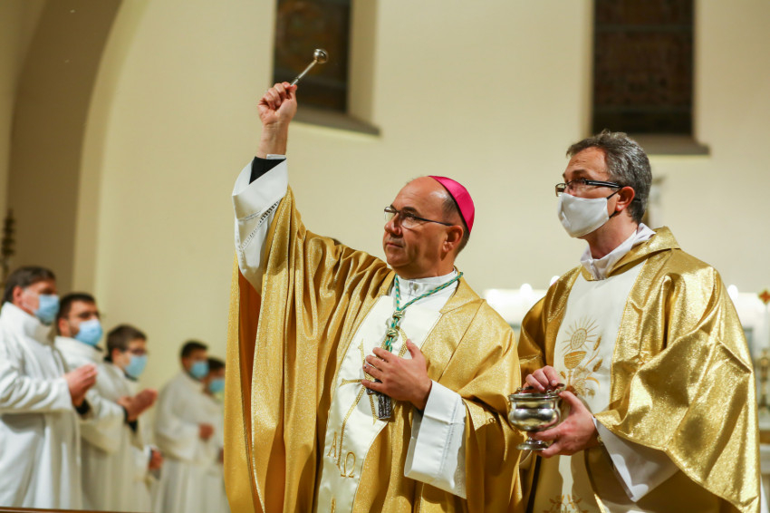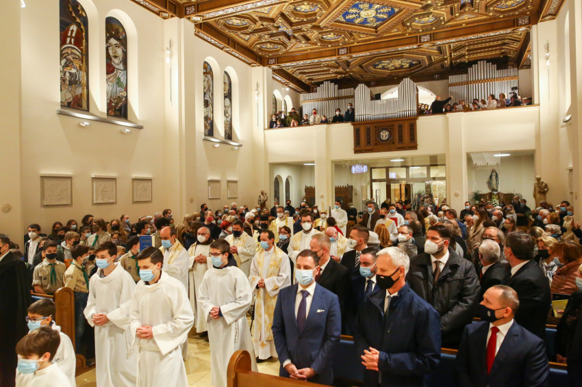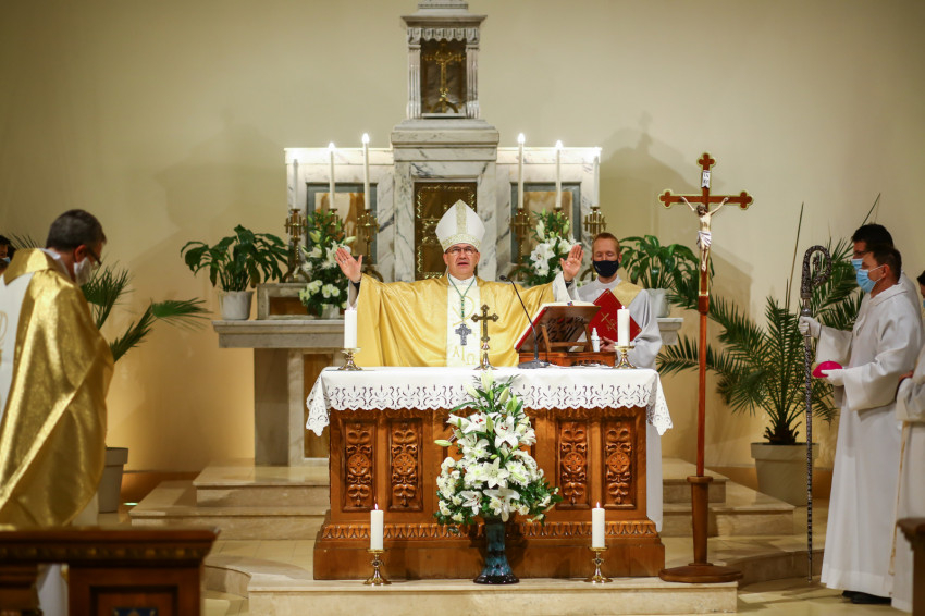 Beszédében a templom búcsúnapjához kapcsolódóan a Szent Imre által is közvetített prófétai üzenetet emelte ki. – Korunk, melyben az ember átadja magát pillanatnyi vágyai sodrásának, követi a könnyebb utat, így a test parancsol neki, amiből a lélek szolgasága következik. Az ember egyre képtelenebbé válik arra, ami erőfeszítést kíván, ami szép, ami nemes. Ezzel szemben áll, ha a lélek ragadja kezébe a gyeplőt, és irányítja a testet. Erre mutat példát Szent Imre élete – mondta.