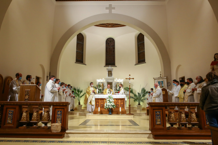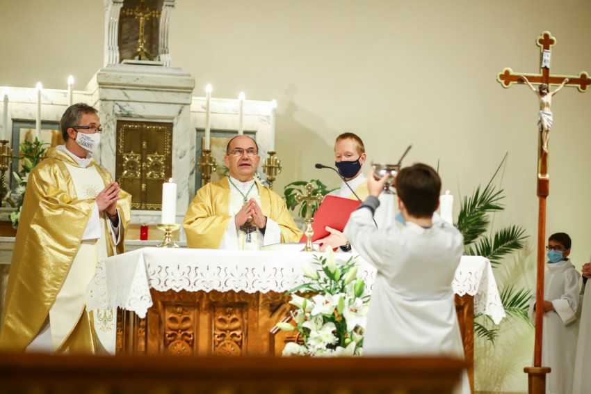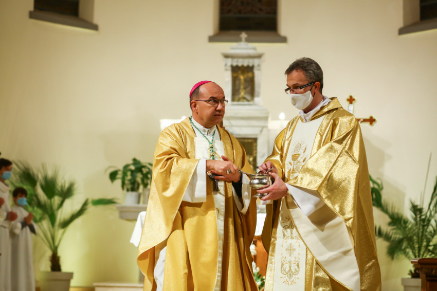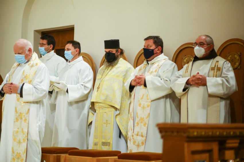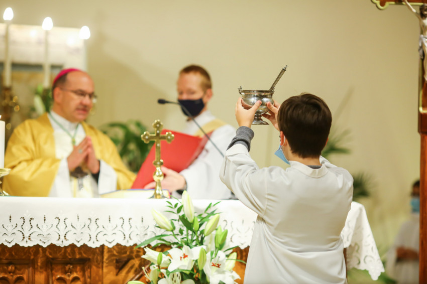 A liturgia a víz megáldásával kezdődött, majd a püspök körbejárt, és megáldotta a közösséget és a templomot is.