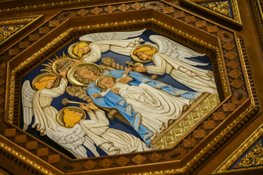 Az egybegyűlteket Farkas László plébános köszöntötte. – Őseink Szent Imre nevére építették a templomot. Amit a háború megakadályozott, mi, utódok fejeztük be. Megújult az ókeresztény bazilikák stílusát követő fakazettás mennyezet, benne a templom központi elemeként Patrona Hungariae alakja.
