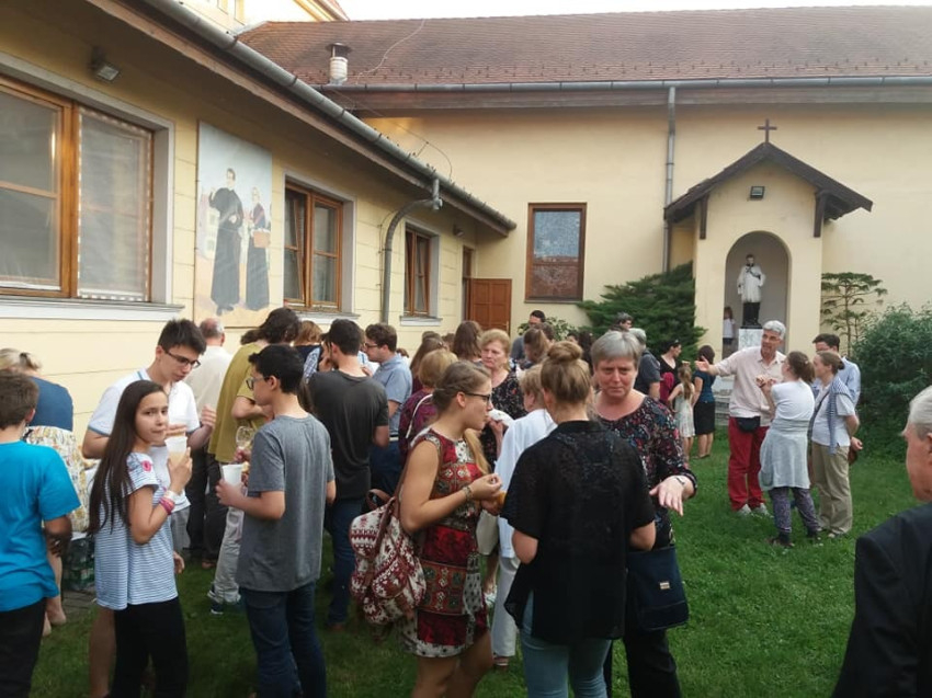 A május 27-i szentmise után kötetlen ünnepségre várták az óbudai kápolnaközösséget a szalézi munkatársak.