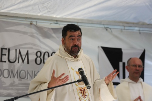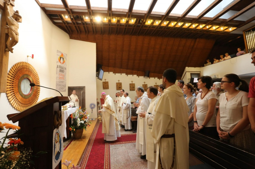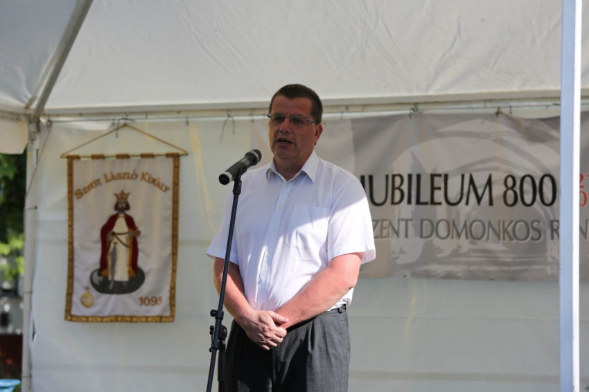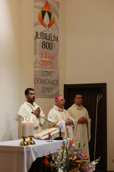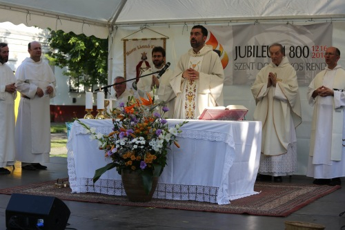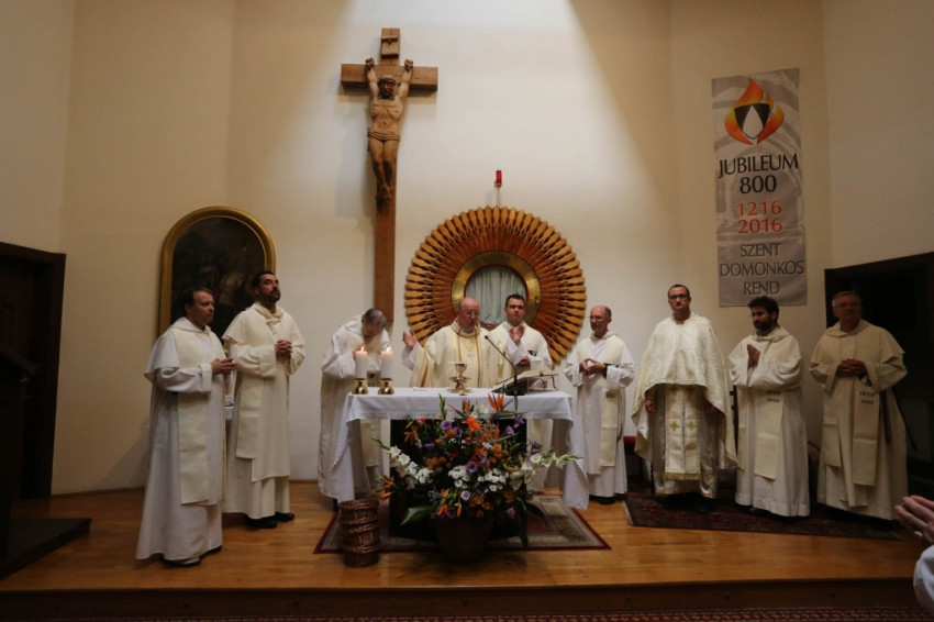 A 18 órakor kezdődő szentmise főcelebránsa Barna Máté OP vikárius volt, aki Szent László apostoli király és Szent Domonkos rendalapító alakját idézve a kettejük élete közötti párhuzamokat kereste. Ahogyan elmondta, bár a király személye mögött politika van, amely sokszor az evangélium szerinti élet kibontakozását hátráltatja, Szent László mégsem csak király volt: olyan uralkodó is, akit megérintett az evangélium és Jézus jósága. Jézus jósága miatt tudott jó király lenni – fogalmazott. Szent Domonkos az eretnekségekkel teli 13. században indult el, hogy prédikáljon Isten jóságának megnyilvánulásáról. Istennek az emberrel kötött új szövetségében az Isten s az ember elválaszthatatlan. Isten merte felvállalni az embert, bennünk pedig meg kell valósulni annak, amit az emberré lett Jézus megélt. Istenkapcsolatunk következménye a misszió, a tanúságtétel. A szentek azért csodálatosak, mert bennük megvalósult a krisztusi ember. A mi legfőbb feladatunk is az, hogy Krisztus áradjon, sugározzon belőlünk – zárta szentbeszédét Barna Máté vikárius.