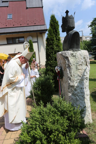 A szentmise végén – a templom hagyománya szerint – az udvaron található, Tyll Aran szobrászművésznő által készített Szent László-szobornál imádkozott Palánki Ferenc püspök a lovagkirály közbenjáró segítségét kérve, majd megkoszorúzta a szobrot.