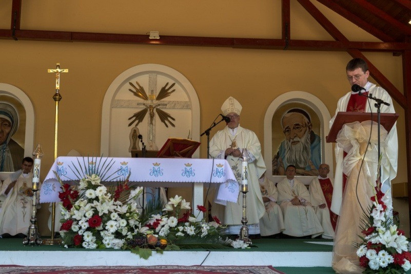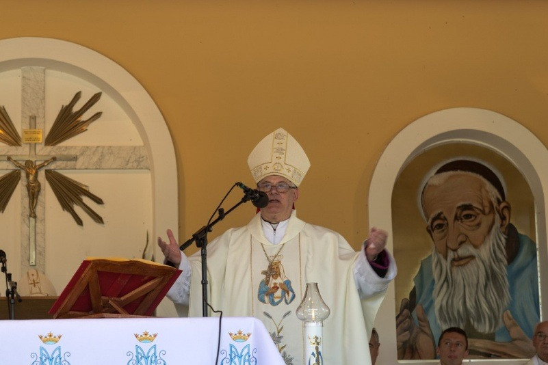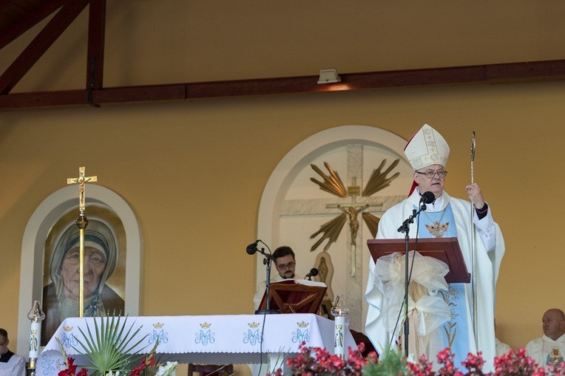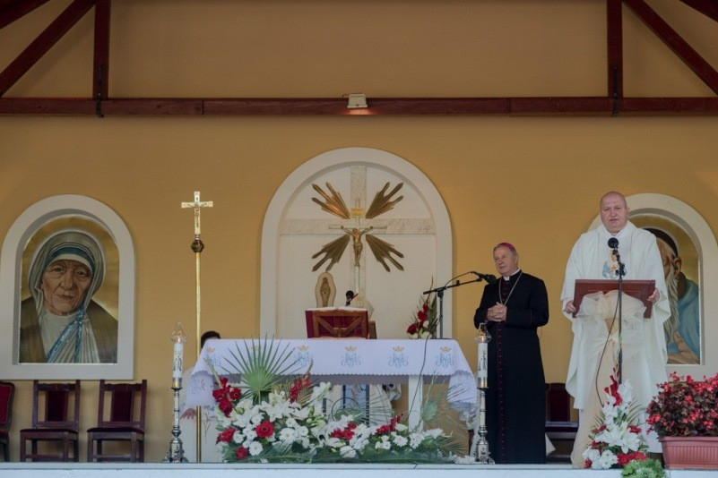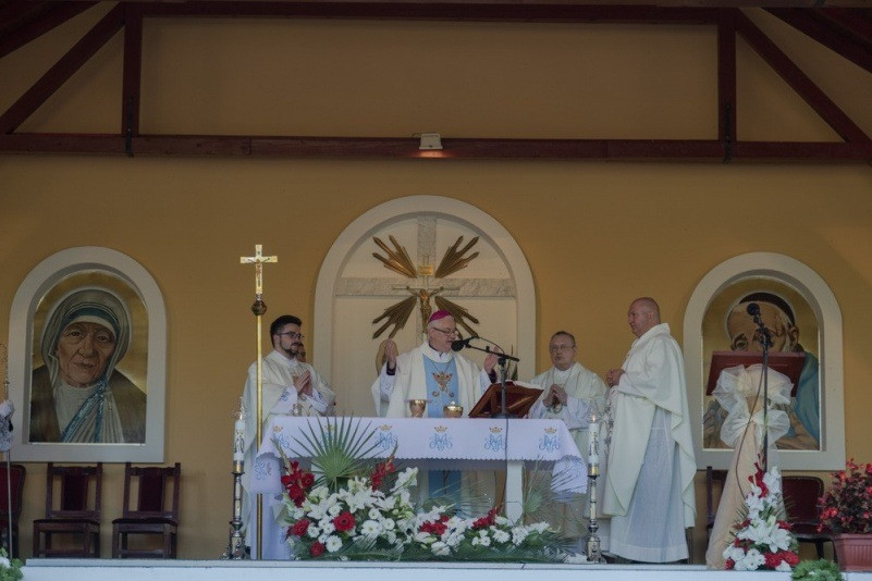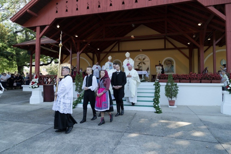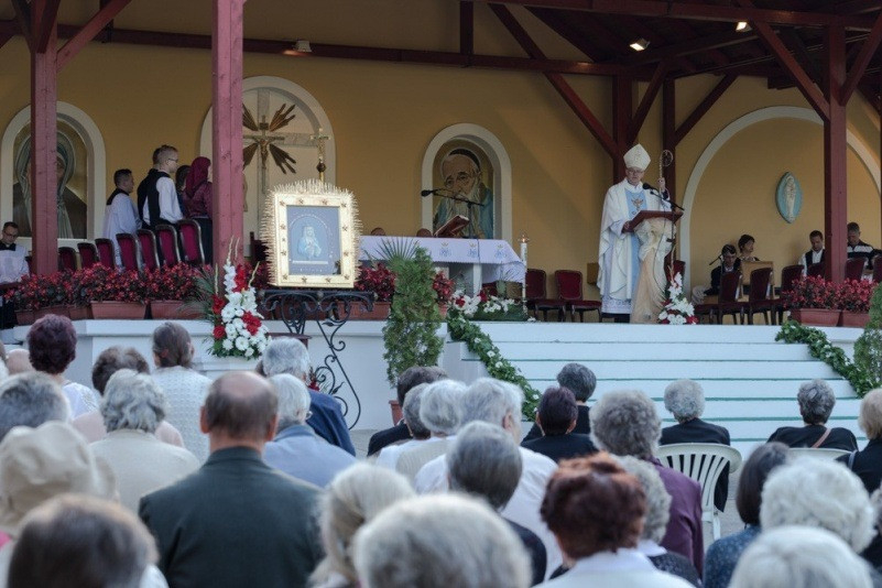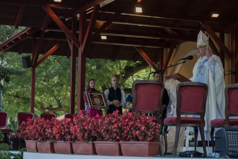 Az augusztus 28-án, vasárnap reggel 8 órakor kezdődő szentmisét nagyszámú magyar hívő jelenlétében Spányi Antal megyéspüspök mutatta be, a szertartás végén Mijo Gorski segédpüspök horvátul köszöntötte a magyar híveket, a 10 órakor kezdődő horvát nyelvű szentmise után pedig a székesfehérvári püspök szólt a horvát hívekhez.