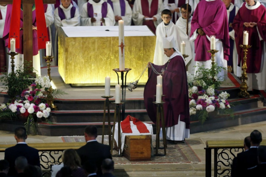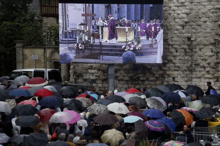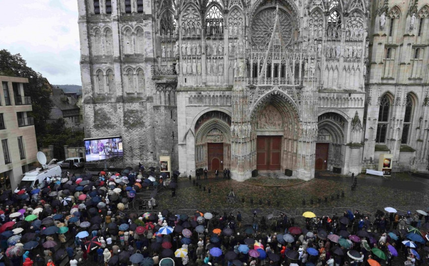 A gótikus épületben és az előtte lévő téren mindegy kétezren vettek részt az esővel dacolva Jacques Hamel búcsúszertartásán.