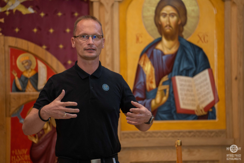 Ezt követően Szabó Tamás atya interaktív módon igyekezett a bizánci lelkiségbe bevonni a jelenlévőket.