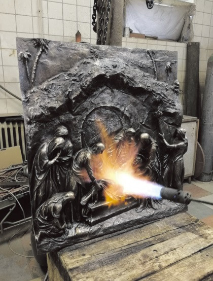 Mire híradásunk megjelenik, nyilván már egy további fázisánál tart majd a munka. A bronz domborművek cizellálását, patinázását Gere László, a bronzöntést pedig Meszlényi János (Plasztikum Bt.) végzi. Ha minden a tervek szerint alakul, június 15-ére a helyére kerül a keresztút a Józsefvárosi Golgota téren, mindannyiunk örömére.