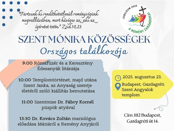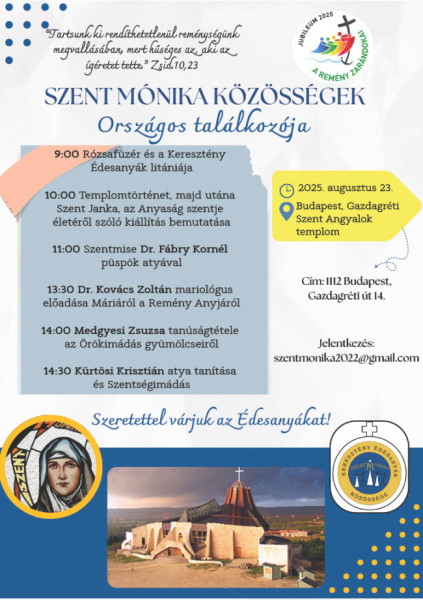 A Szent Mónika Közösségről és a találkozó programjáról a www.szentmonika.hu honlapon olvashatnak.