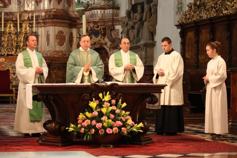 Vasárnap délben Pákozdi István egyetemi lelkész, a kollégium igazgatója mutatott be kétnyelvű koncelebrált szentmisét a grazi dómban, amelyen az egyetemisták szolgáltak – ministráltak, illetve orgonáltak.