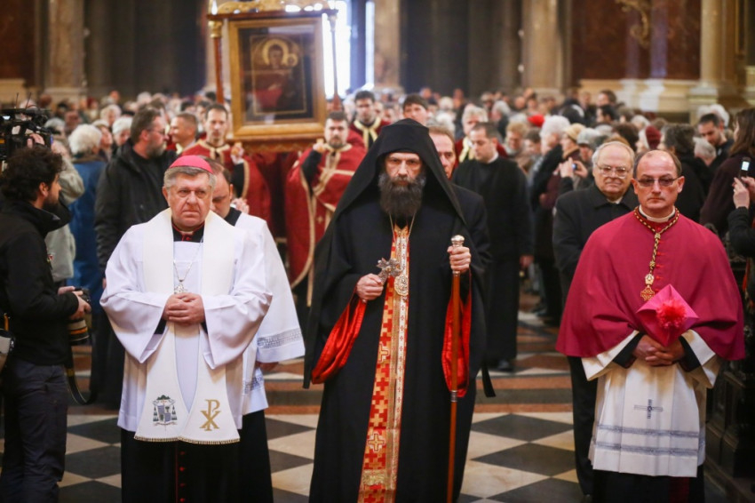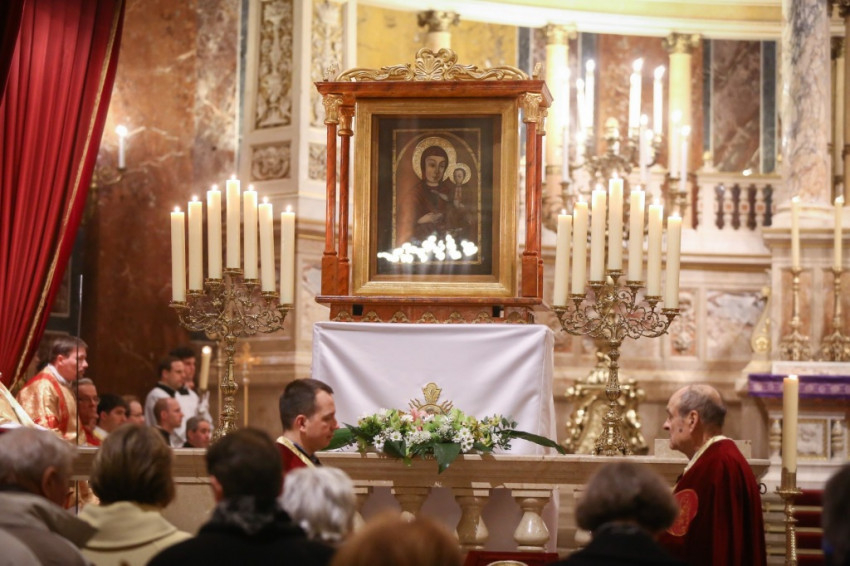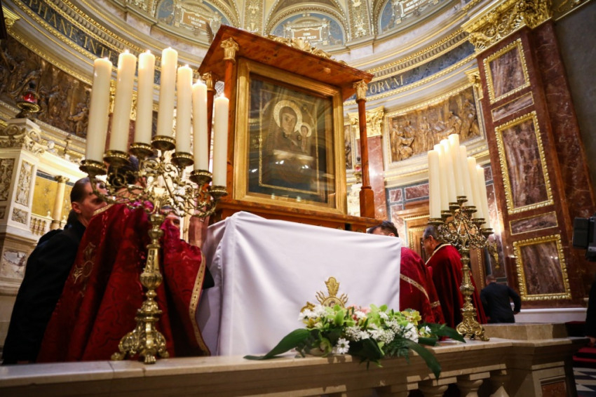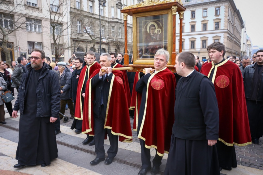 A Budapestre érkezett Istenszülő-kegyképet Kocsis Fülöp hajdúdorogi megyéspüspök vezetésével ünnepélyes processzió kísérte a Duna-parttól a Zrínyi utcán keresztül a bazilikáig, ahol Snell György esztergom-budapesti segédpüspök, a bazilika plébánosa fogadta.
