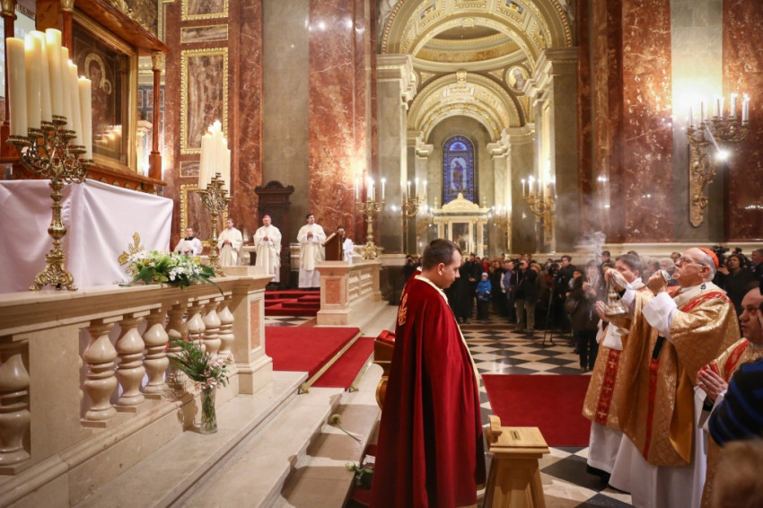 Erdő Péter bíboros Kocsis Fülöp hajdúdorogi megyéspüspök, Keresztes Szilárd nyugalmazott hajdúdorogi megyéspüspök és Snell György esztergom-budapesti segédpüspök, a bazilika plébánosa koncelebrálásával mutatott be ünnepi szentmisét a zsúfolásig telt bazilikában.