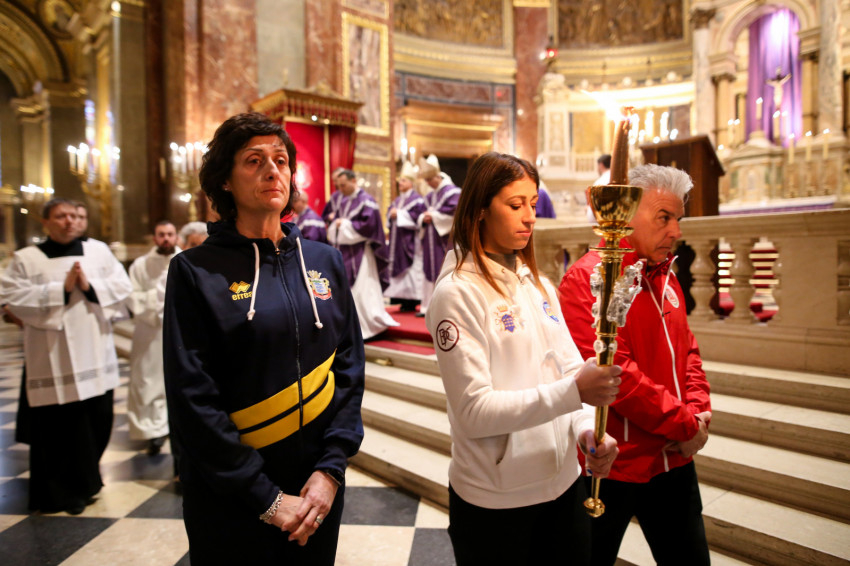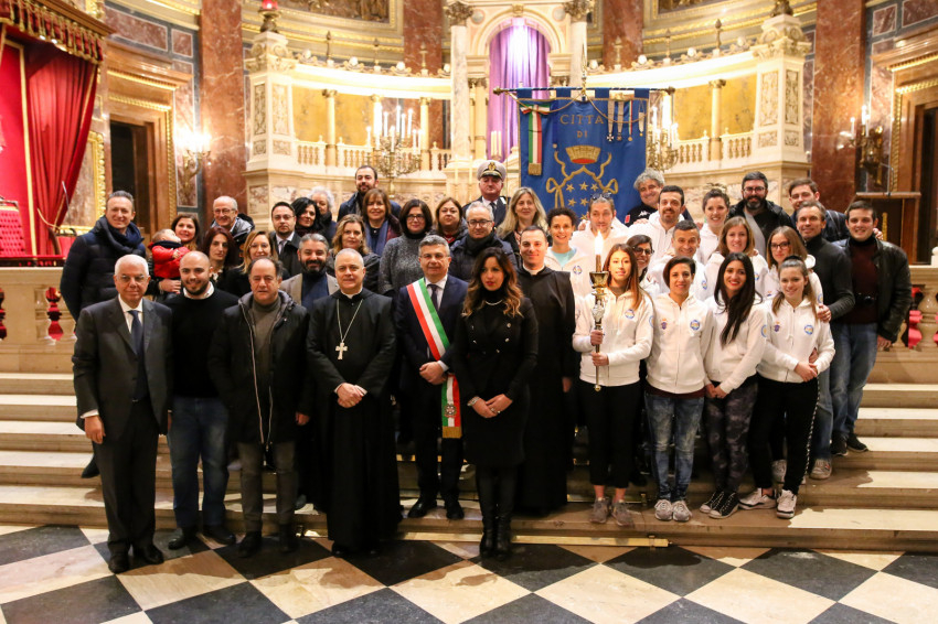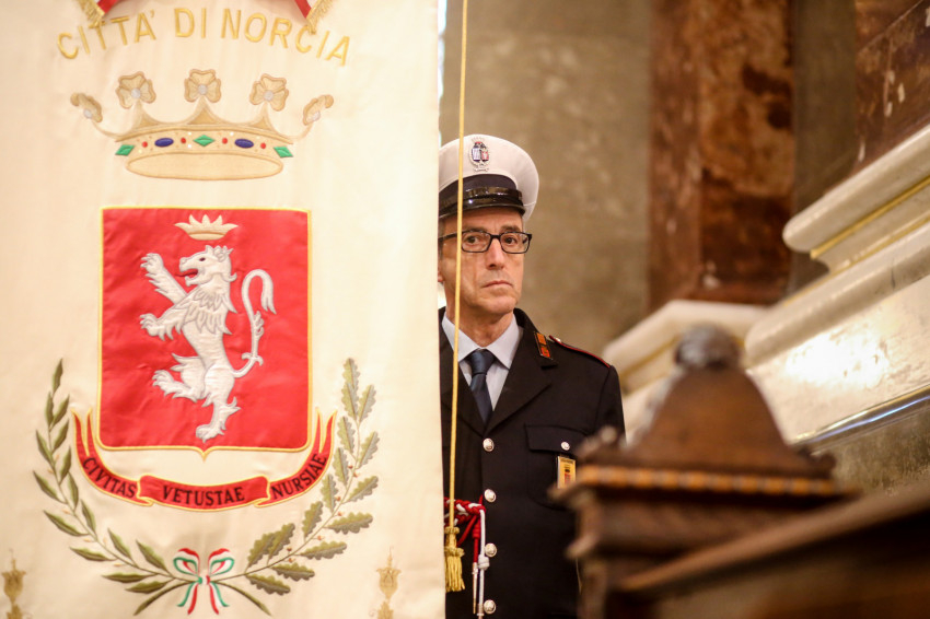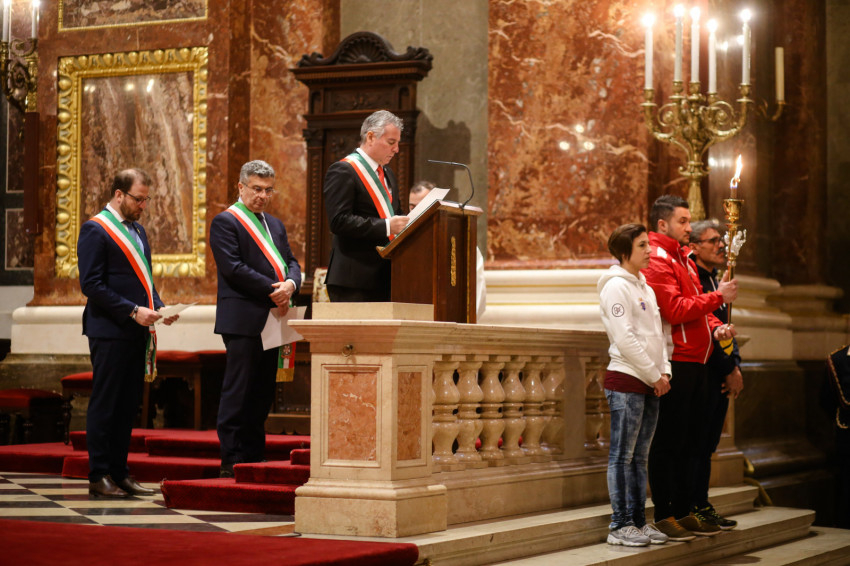 Szent Benedek városainak – Norcia, Subiaco és Cassino – polgármesterei és mintegy százfős delegáció kísérte a lángot.